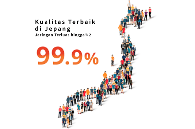 - Per Mei 2023. Internet berkecepatan tinggi tanpa batas di seluruh Jepang tersedia mulai Juni 2023. Cakupan populasi dihitung berdasarkan area dengan konektivitas lebih dari 50% dalam grid 500m yang digunakan dalam sensus nasional.